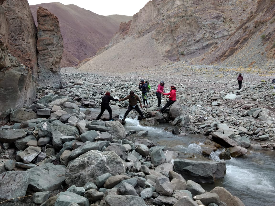 The river flowed beside us, and we were surrounded by mountains on all four sides. These mountains at that altitude (somewhere around 11500 ft) weren’t the snowy, grassy or rocky kind. There were covered in layers of sand, with the occasional boulder and piece of dry wood. We saw a very old observation point, a stone structure used by messengers and soldiers during times of war. It wasn’t very difficult, and I was feeling confident about the expedition, but all this confidence was shattered when our head guide told us it was going to be 5 times harder.