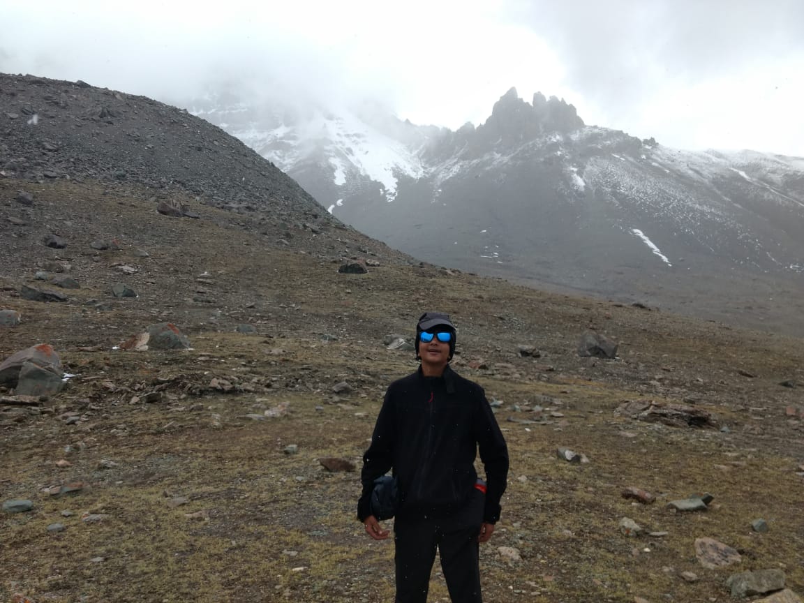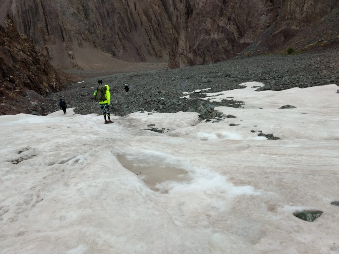 We began our hike to the glacier in the morning. We were relieved of our rucksacks, so were walking twice as fast. We were walking on almost flat ground for an hour, from which we started our real ascent. As the group trudged along behind us, an instructor and me raced ahead. We continued climbing, pausing every 15 minutes. Every time I asked our instructor the estimated time of arrival, he kept saying 30 minutes more. With that phrase he made me climb three hills and two ridges until we actually got there.