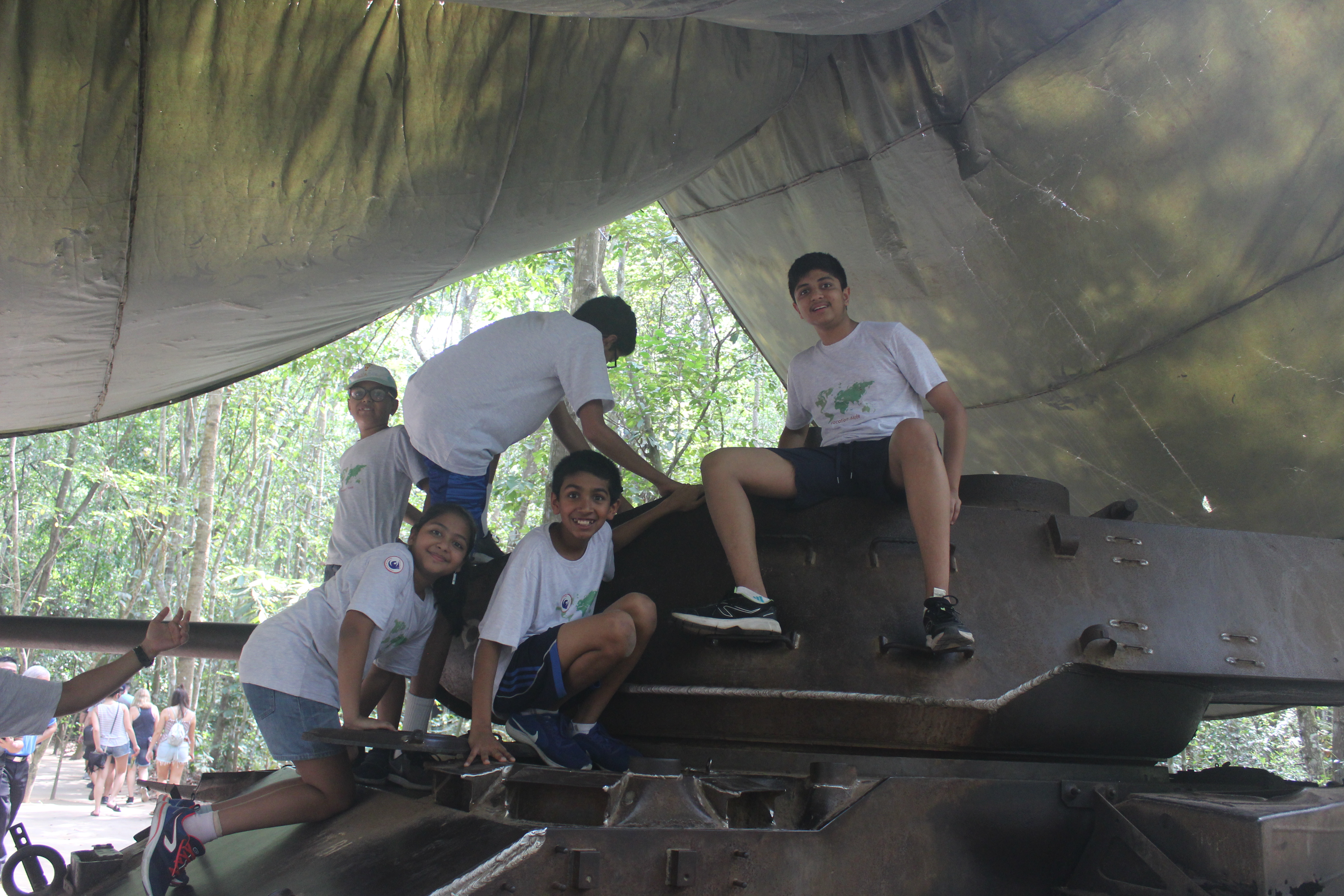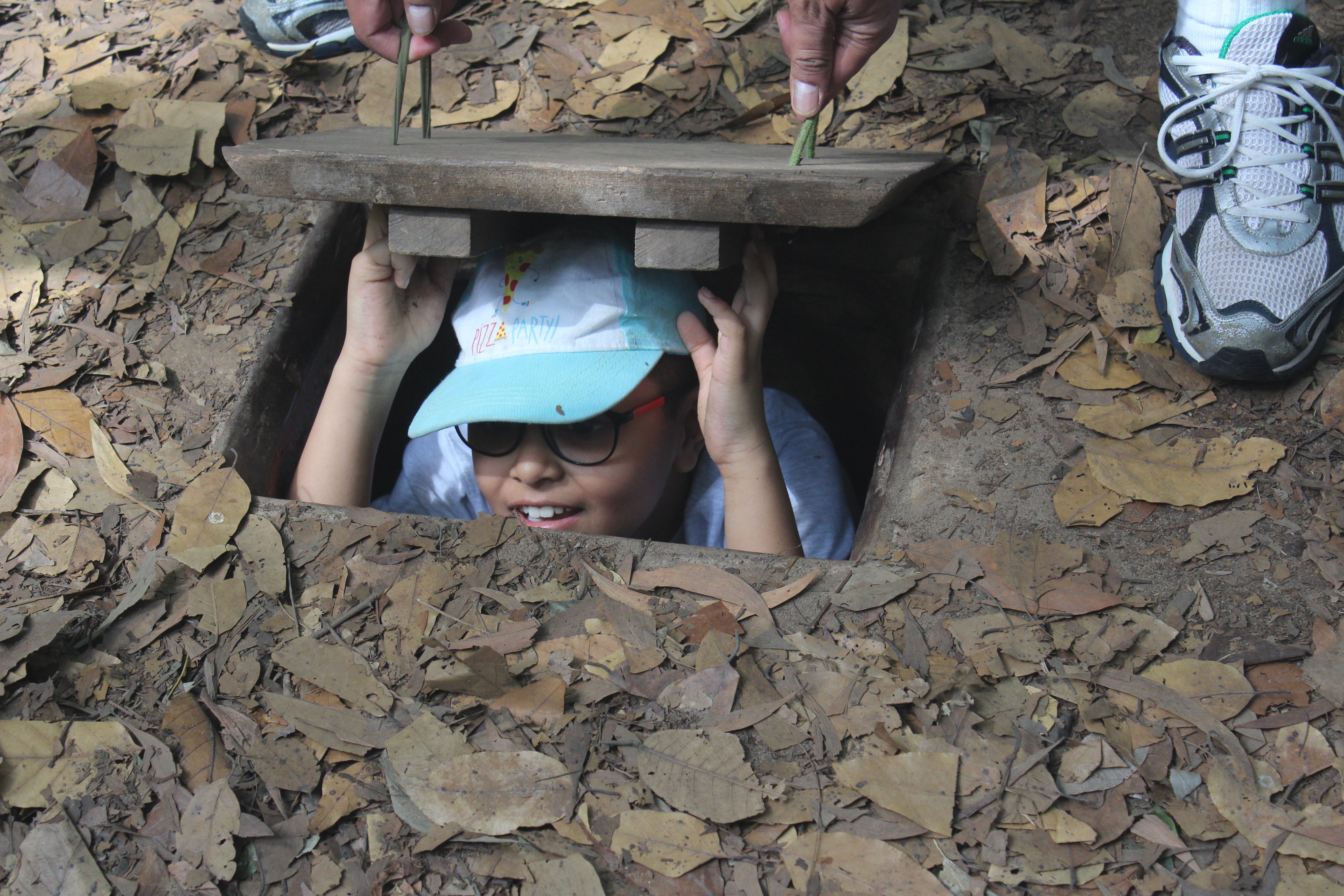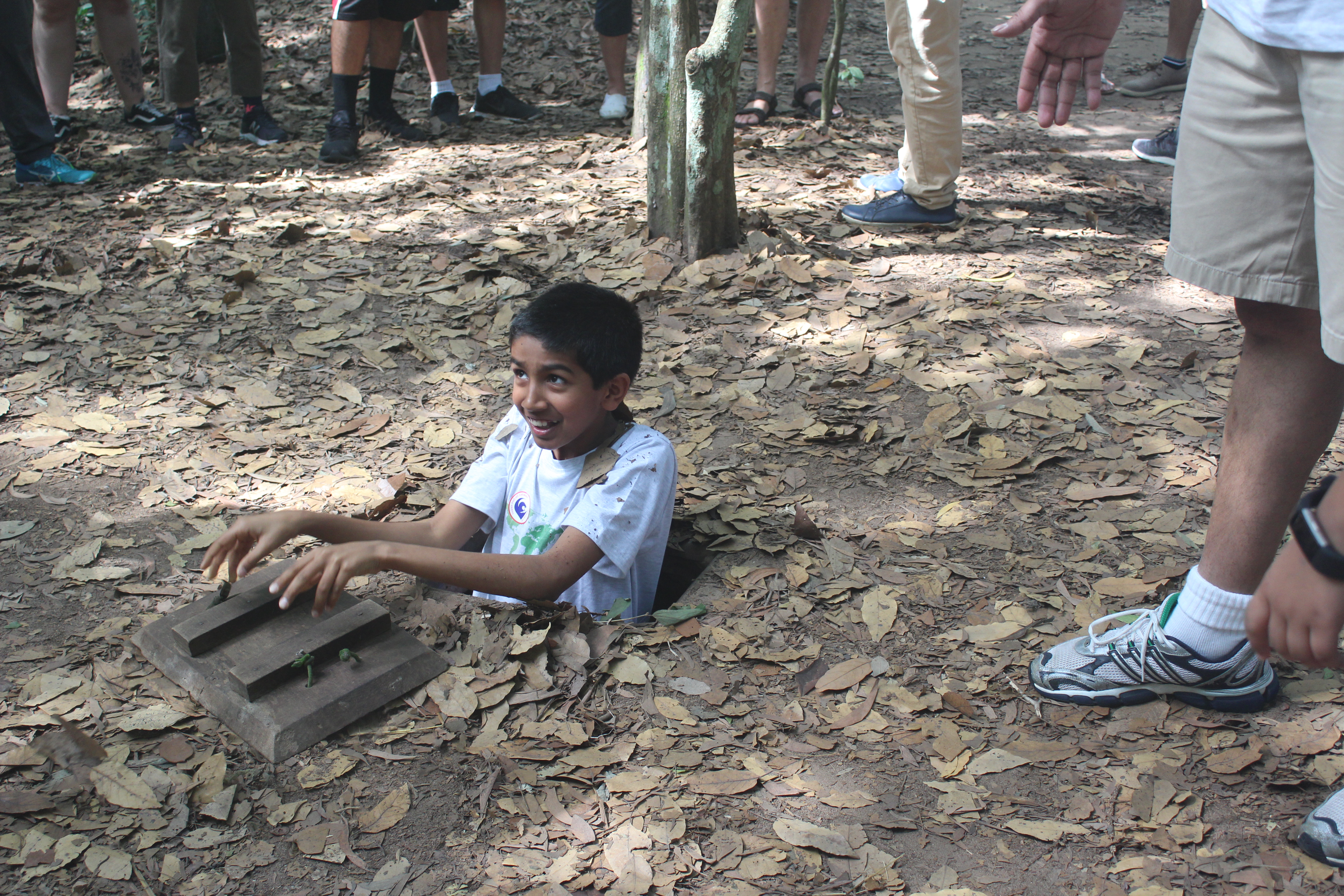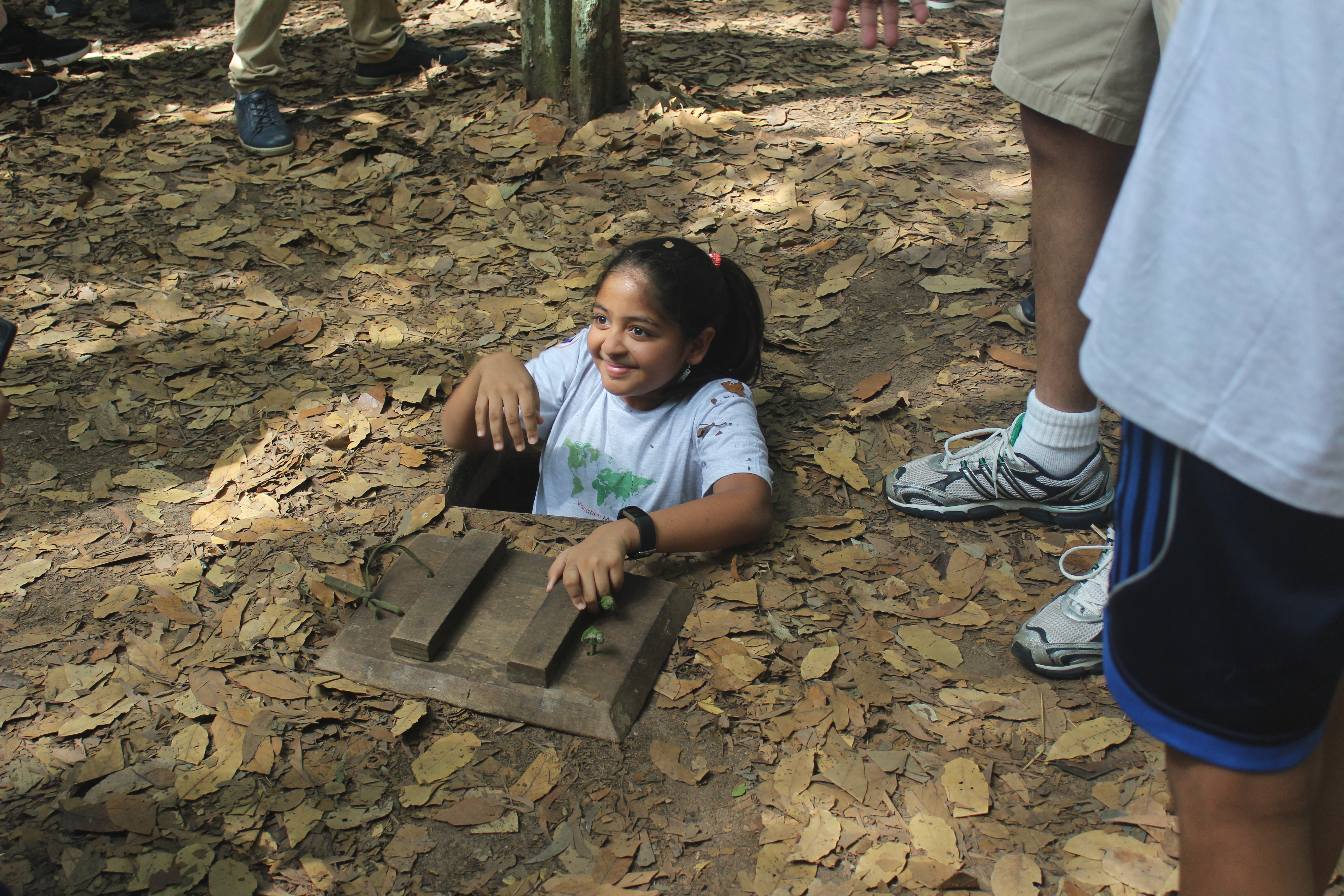 Again, Vietnam has done a great job in making historical locations as attractive to tourists as possible – there were great guides spotted throughout the location, they retained the natural landscape while making a path that was easy to walk on, and had live demonstrations of all the traps and tunnels. They had a kilometer-long tunnel dug in the ground where tourists could climb in and squeeze through to the other side. Us kids could make it through, but many other adults could barely fit. These tunnels were built for the small frame of the Vietcong and were incredibly useful for them to move around undetected and sneak up behind enemy lines.