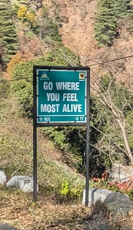 The Border Roads Organization (BRO) puts up humorous safety signs along all its roads, to hopefully reinforce safe driving. While the puns are always intentional, they seem to slip in inspirational quotes. I’ve taken the liberty of putting together a list of all the quotes we saw along our travels (over 100 of them!) in this document.