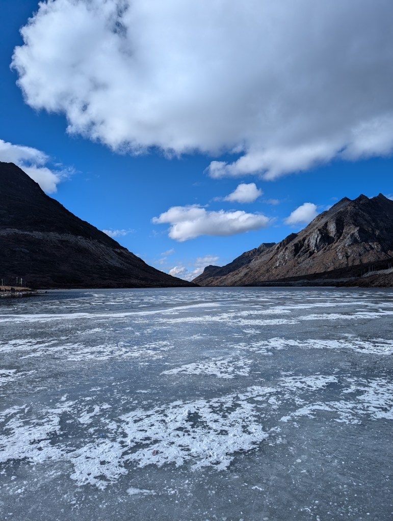 While the valleys we crossed were jaw-dropping and forced me to take as many pictures as parents do on their iPads during school performances, the high-altitude frozen lakes were the biggest surprise. The Sela lake at 13000+ ft with its deep blue water and glistening snow-white ice sequestered in-between rising hills simply took my breadth away. While it was probably not environmentally nor tourist friendly for me to join the hordes of people scampering on the semi-frozen lake, it really was a once-in-a-lifetime opportunity. I am also happy to report that the intrusive thoughts of sliding like a penguin on the ice did not win that day!