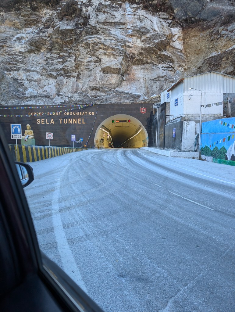 These long drives are made accessible by some major investment in the Border Roads Organization, a subsidiary of the Ministry of Defence and the driving force behind roads along India’s borders. They’ve been working in Arunachal since the 1960s under project ‘Vartak’, and have seen a 30% increase in their budget this year compared to last, with an overall 160% increase now since FY21-22, due to the perceived increasing threat from China. This makes sense – after speaking to candid army officials, much of India’s disadvantage on the border stems from the lack of suitable roads for army movement, whereas China’s quick deployment is a direct result of their connectivity. The scary clash in Yangtze in December 2022 (visible to us and a stone’s throw away from the holy waterfalls) saw India scramble to make it to the top of a plateau with no road. Now, tourists can see a long, picturesque winding road (only accessible to the army), built in response. What’s more, you can see the progress they are making in the region; the new Sela Tunnel, which reduces the drive to Tawang by an hour and can facilitate troop movement in the harsh winters is an engineering marvel! Still, my favorite piece of road is the one they were actively building in front of us!