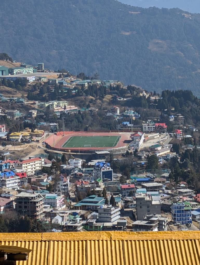 Tawang is known for its monastery, the largest in India (and third largest in the world), which is situated atop a hillock, with its white, glistening compound reminding me of ancient Roman structures every time I looked across the valley. The Tawang market is a complex mix of the past and the future; like any small-town commotion-filled marketplace, there were very visible generational shops, with uniform green shutters and a common lettering to their names. The relaxed pahadi vibe was on display, with some shopkeepers leaving their wares unattended as they enjoyed long lunches and possible sensible siestas for hours before ultimately deciding to just shut shop for the day. Everyone moved slowly, which really opposed the ever-moving ‘bhaag daud’ (rushed) Bombay city attitude I’ve come to expect. Back home, people have places to be and will hastily help you along your way; here, expect a chat, a laissez-faire stroll to the back and a Zootopian sloth’s speed in handing you your purchase. In between, we also found an outcropping of new cafes, with their clever names, typography and fancy facades built by the next generation of Tawang. Amongst this wave of modernization we also spotted a brand-new football stadium right in the middle of the city boasting a manicured green and towering flood lights, one of my favourite sites to peer over from across the valley.